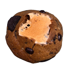 S’mores cookies means ” some more cookies”, its cookie is marshmallow coated witch a cookie dough, and the marshmallow will melted when you craked it.